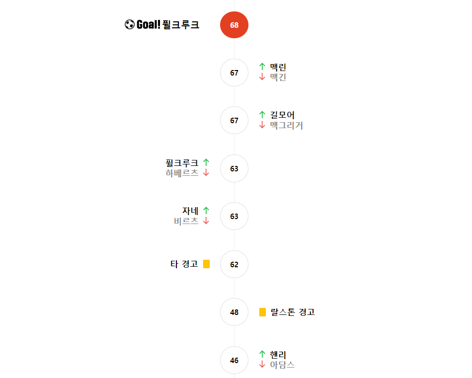 | 맥그리거 MF | 0 | 0 | 0 | 0 | 14 | 2 | 1 | 6 | 2 | 3 | 0 | 0 |