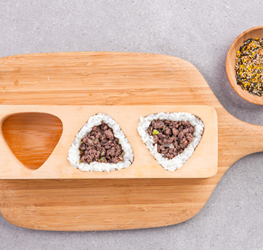 STEP4 양념한 밥에 ②를 넣고 삼각형, 원형 등으로 성형하여 후리가케를 묻히거나,김을 잘라서 감싼다.