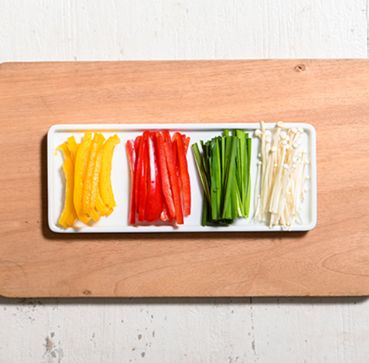 STEP1 팽이버섯과 채소들은 채 썰어 준비한다.