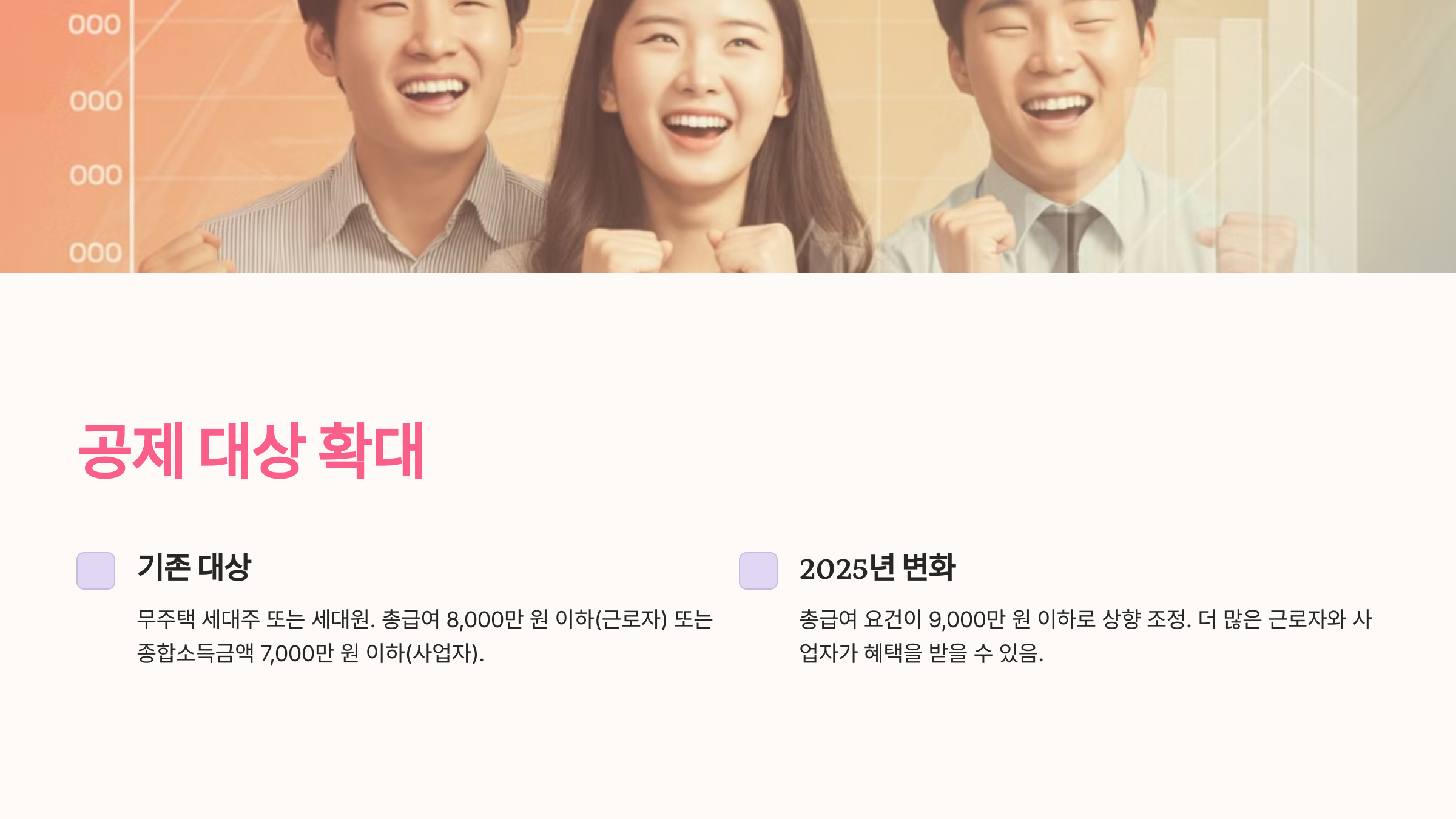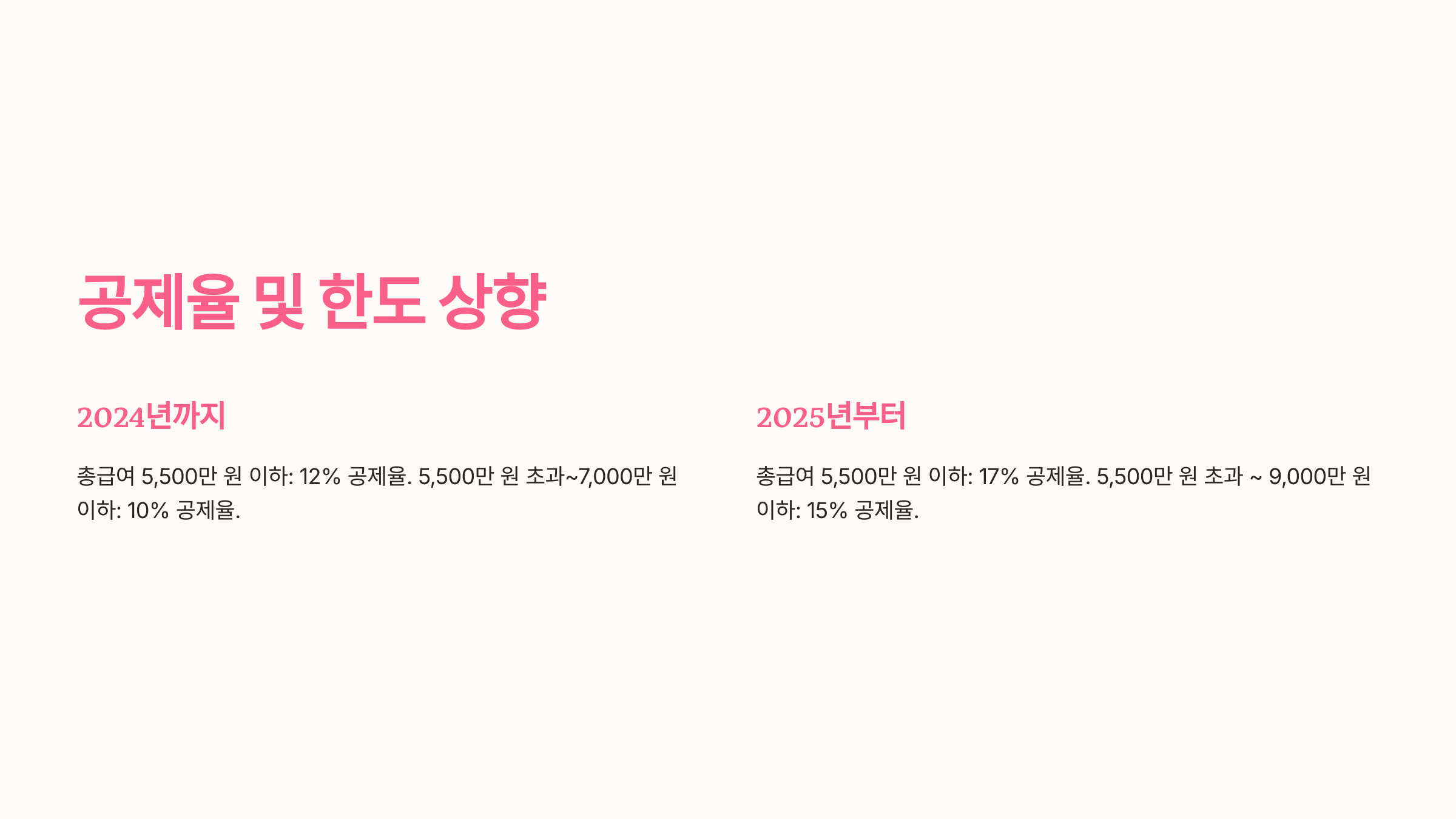 - 연간 공제 한도가 750만 원 → 1,000만 원으로 상향.