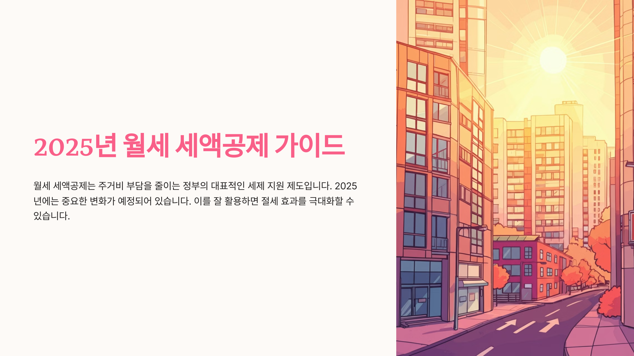 이번 글에서는 2025년 월세 세액공제의 변화와 효율적인 절세 전략을 소개합니다.